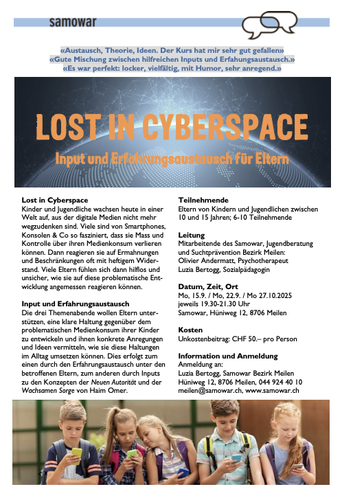Input und Erfahrungsaustausch für Eltern von Kids (10-15 Jahren) mit einem problematischen Medienkonsum